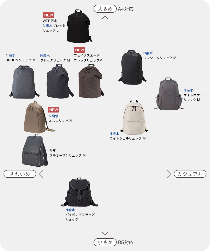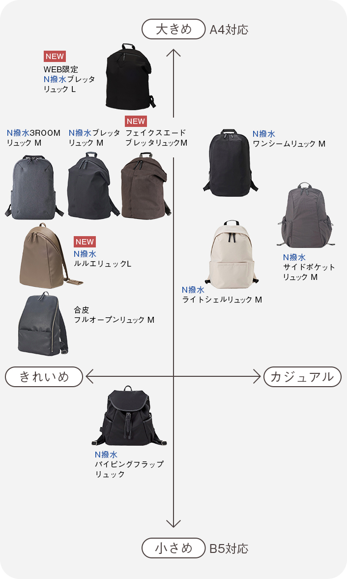 KEYUCAでは、普段使いからお出かけや通勤までライフスタイルに寄り添うリュックを取り揃えています。