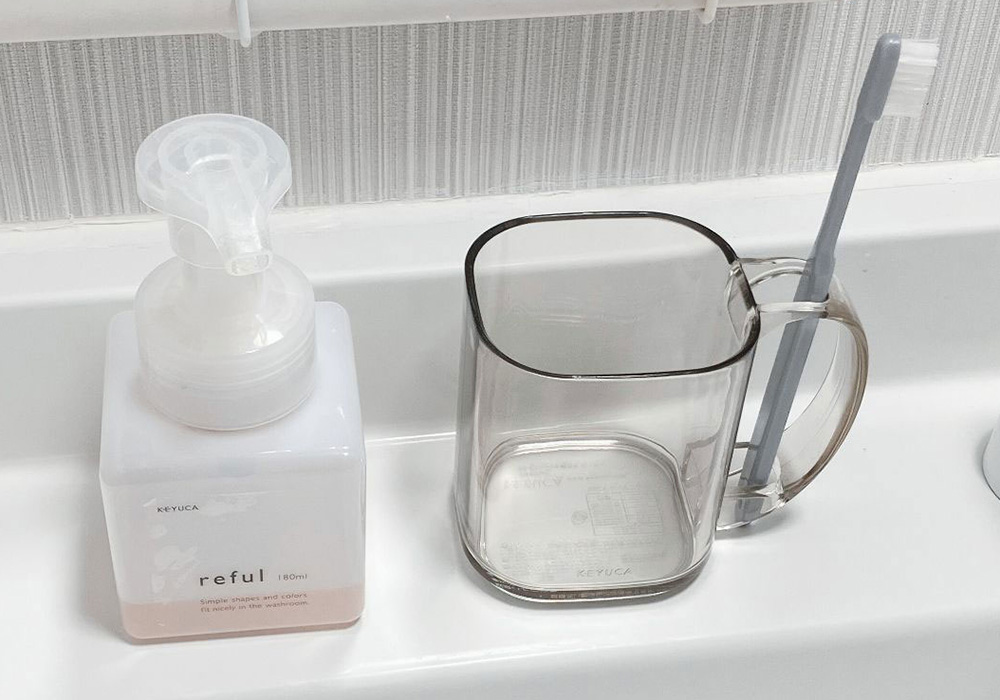 お気に入りのボトルとハブラシコップ。 特にハブラシコップは5年くらい毎日使ってる。 高級感がある見た目が好き✨ ハブラシもスマートに置けて、 場所を取らないのが嬉しい😊 #ケユカ25周年