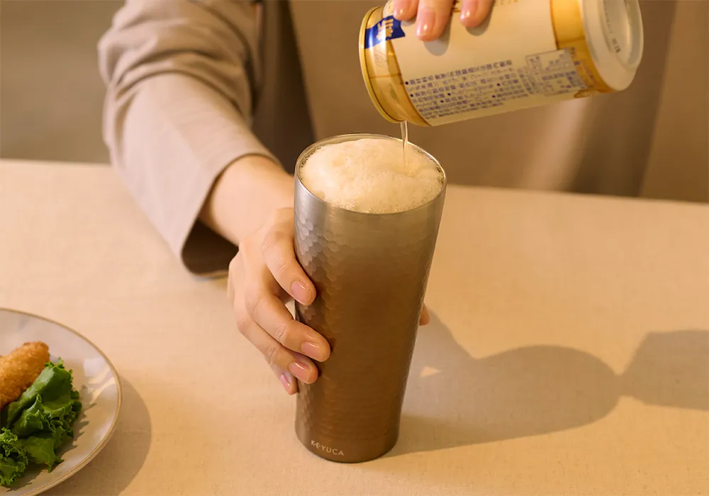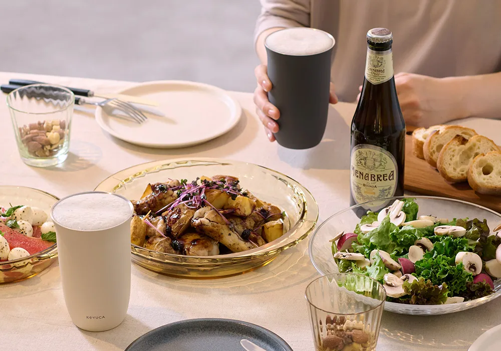 初めて使ってみて、驚きました!ふわもこの泡が注ぐだけで簡単にでき、泡をキープできること。何度口に運んでも心地よい冷たさ。そして程よく炭酸が抜けるためか、味わいがマイルドに。いつもより特別感を感じました。