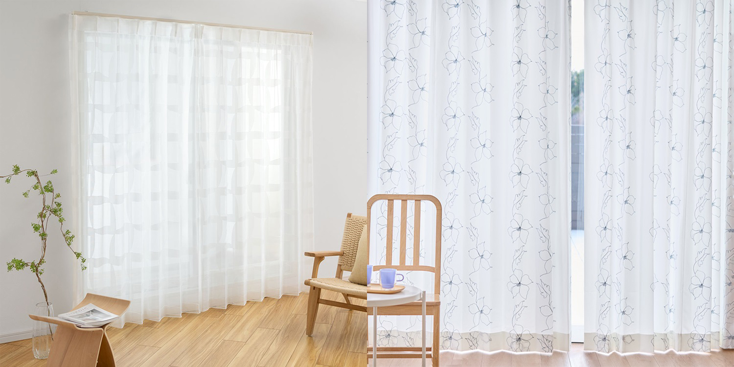 レースカーテンはドレープカーテンとの組み合わせも大切です。同系色で揃えるとまとまりが出て、異なる色でもトーンを合わせれば違和感なく仕上がります。 単体ではなくセットで考えることが、完成度の高いインテリアづくりのポイントです。
