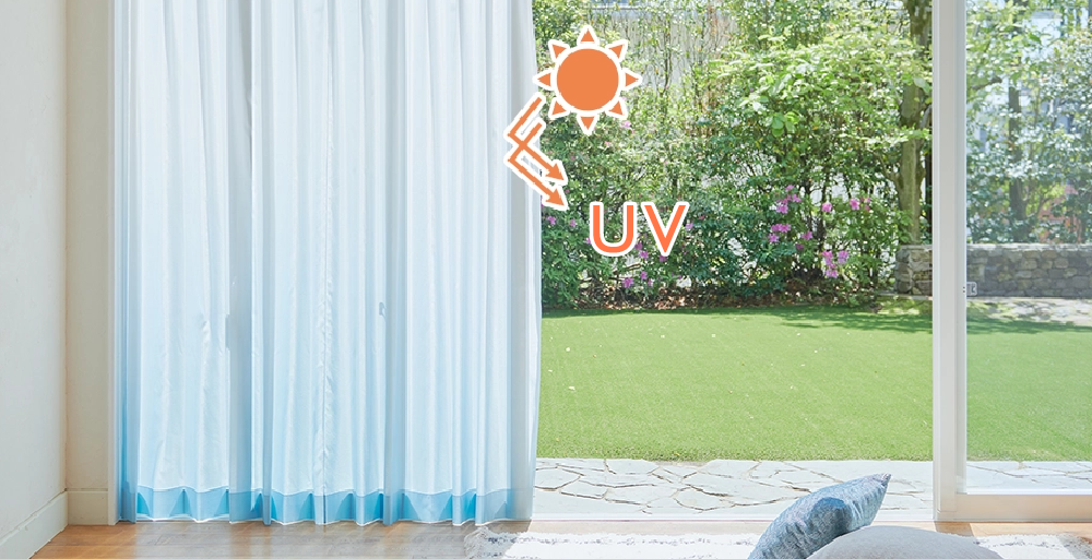 外で浴びる紫外線量の約80%が窓ガラスを通して室内にも入ってくると言われています。 UVカットレースカーテンは、紫外線を反射させるのが特徴。 約60~99%UVカットし、家具や床、カーペットの色焼けを防ぎます。 お肌へのUV対策にも役立つので、紫外線を気にせずにすっぴんで過ごしていただけます。 美容とインテリアを守る、暮らしにうれしい機能です◎