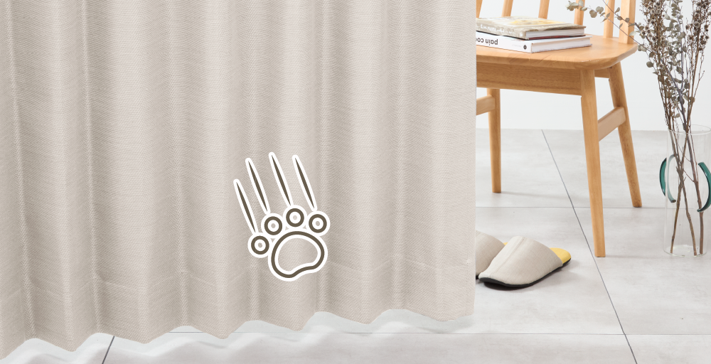 ひっかきや摩擦に強いタフな生地で、ペットのいるご家庭でも安心。 一般的なカーテンよりひっかきに強く、きれいな状態を長くキープできます。