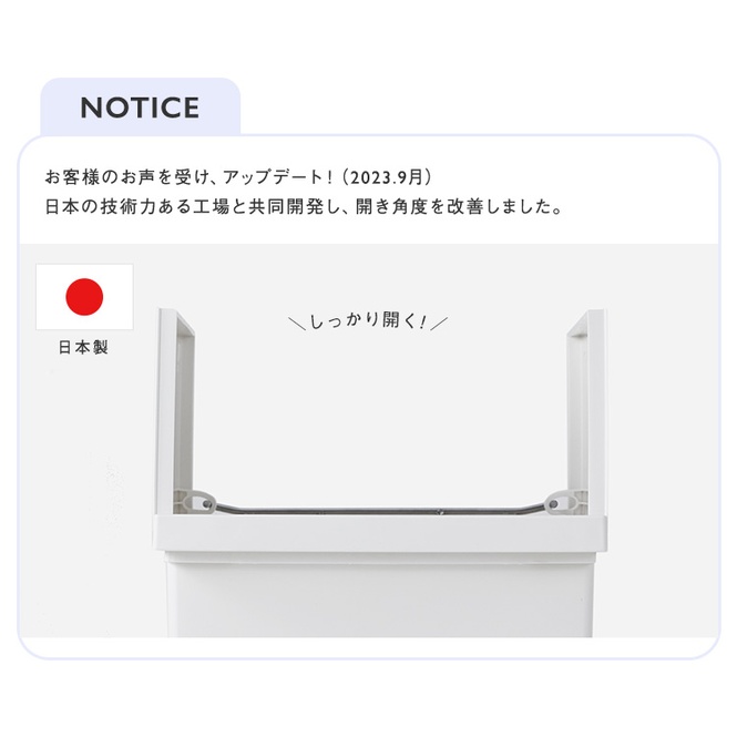 シャープな四角形状のデザインがおしゃれ。 キッチンで2個並べて使っても、すっきり、きれいに並べられます。見た目はシンプルですが、豊富な機能が備わったこだわりのゴミ箱です。 商品ページ:https://www.keyuca.com/Form/Product/ProductDetail.aspx?shop=0&pid=3301142&cat=001003001