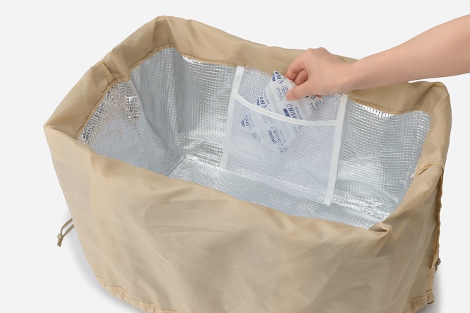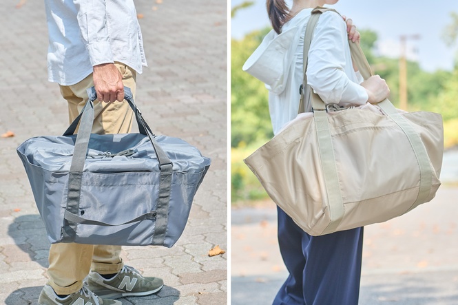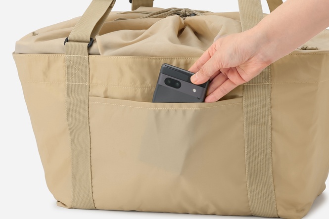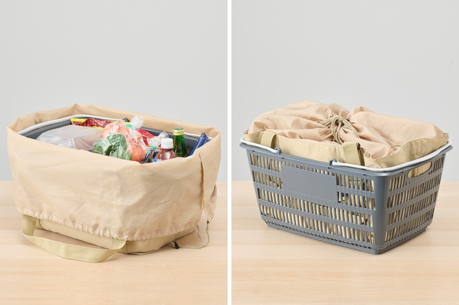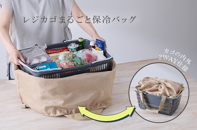 ・レジカゴ1個分の大容量:マチ付きでたっぷり入るサイズ感 ・2WAY仕様:カゴの内側・外側どちらでも使える柔軟な設計 ・持ち方自由自在:丈夫で長さ調整可能なハンドルは、肩にかけたり手で持ったりが可能 ・保冷機能付き:内側にアルミ保冷素材を使用し、保冷剤用ポケット付き。冷蔵・冷凍品も安心 ・軽量&コンパクト:310g(りんご約1.5個分)で、折りたたんですっきり収納 ・外ポケット付き:スマホやお財布、小物の収納にも便利 ・Myレジカゴと併用可能:袋詰めの手間がゼロで、買い物がスムーズに完了