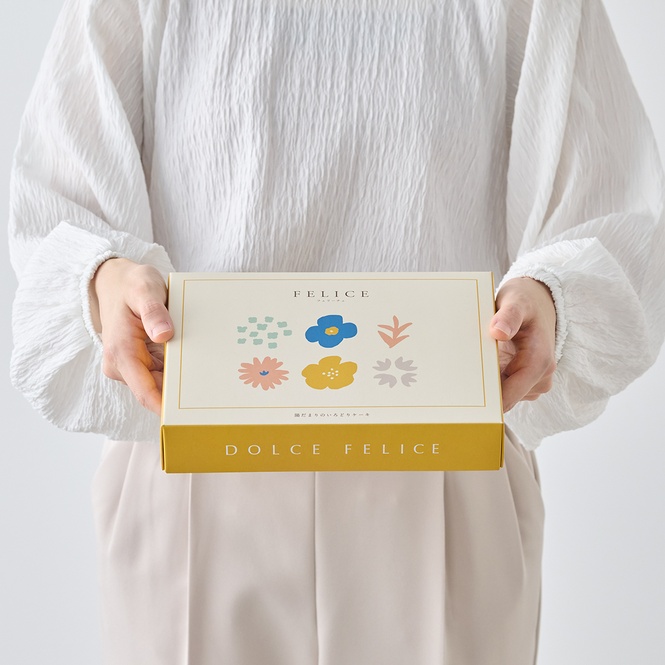 FELICE(フェリーチェ) ~陽だまりのいろどりケーキ~ 紅茶とともに楽しむ華やかなケーキ。 箱を開けた瞬間の喜びは、まるで花束を受け取ったような特別感。 [商品構成] ★Petit(単品、2個)※単品は、店頭のみ ★Gift(4個、6個、9個、12個)