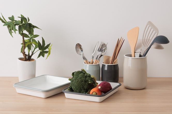 衣食住に関わるオリジナル商品を自社店舗で販売しているライフソリューションブランドKEYUCA(社名:河淳株式会社 所在地:東京都中央区、代表:河崎淳三郎)は、暮らしの不便をすっきりと心地よく解決する「ホーローバット25×20cm」「ホーローカトラリースタンド」「ホーローキッチンツールスタンド ベージュ」を10月11日(土)より発売しました。