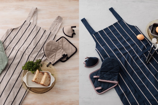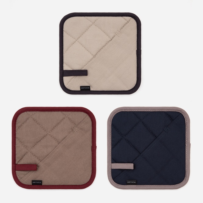 ■耐熱ゴム付きミニミトン 「ちょっと鍋の取っ手を持ちたい」「オーブン皿をさっと取り出したい」そんな瞬間に、従来の大きなミトンでは扱いづらいと感じたことはありませんか? このミニミトンは、手のひら側に耐熱ゴムを施すことで滑りにくく、しっかり掴める安心設計。コンパクトで使いやすく、ループ付きで収納もスマート。忙しい調理中の“ちょっと使いたい”に応えるアイテムです。 ■耐熱ゴム付き三角ミトン 「鍋蓋のつまみが熱くて持てない」「指先でつまみたいのに滑る」そんな不便を解消する三角ミトン。 指先でつまむように使える三角帽子型で、細かい動作にも対応。耐熱ゴムの裏地で滑りにくく、ループ付きで収納性も抜群です。 これからの季節、鍋を囲む食卓で活躍する小さくて自立型の三角形状は、使いたいときにすぐ手に取れて便利。落ち着いた色合いは、使わない時も空間のアクセントになり、インテリアにも馴染みます。 ■ミトンにもなるゴム付き鍋敷き 「鍋敷きは欲しいけど、ミトンも必要。両方置くと場所を取る」そんな悩みに応えるのがこの2WAYアイテム。鍋敷きとして使えるだけでなく、手を差し込めば片手ミトンとしても使える設計。耐熱ゴム付きで滑りにくく、鍋やポットの持ち運びにも安心。キッチンでの「敷く」「掴む」を一つでこなす、合理的で便利なアイテムです。 ■かぶるだけバッククロスラップエプロン ループ付き 「エプロンを着るのが面倒」「肩が凝る」「動きづらい」そんな日常の声に応えて生まれたのがこのエプロン。頭からかぶるだけで着脱できる設計で、忙しい朝や来客時にもサッと身に着けられます。バッククロス仕様で肩に負担がかかりにくく、動きやすさと美しいシルエットを両立。濡れた手を拭くタオルも掛けられるループ付きで、使い勝手の良さが光る一枚です。 今回追加されたカラーは、[グレージュ・ワインレッド・ネイビー]の3色。落ち着きと温かみを感じる色合いは、秋冬のキッチンや暮らしの空間に自然と馴染み、季節の変化を楽しむ彩りとしてもおすすめです。 「機能性は欲しいけれど、色で妥協したくない」そんな声に応えるKEYUCAの新色展開は、毎日の家事時間を快適に、そして少しだけ楽しくしてくれるおすすめアイテムです。 特集ページ https://www.keyuca.com/Page/Feature/ovenware.aspx