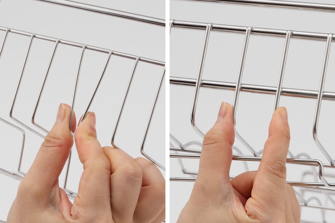 ワイヤーの危険な角が出ない安全設計で、手や指が触れても安心。 毎日使うものだからこそ手にやさしく、布巾で拭いても引っかからず、お手入れもスムーズです。