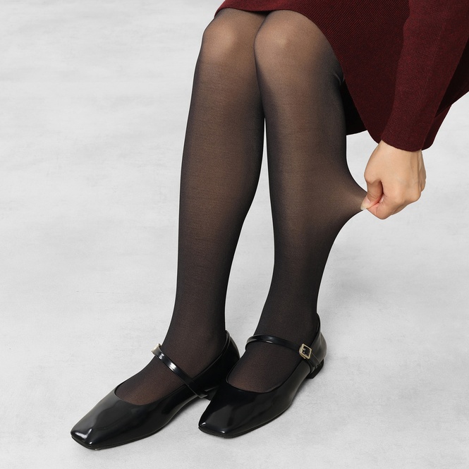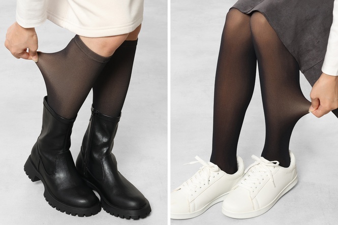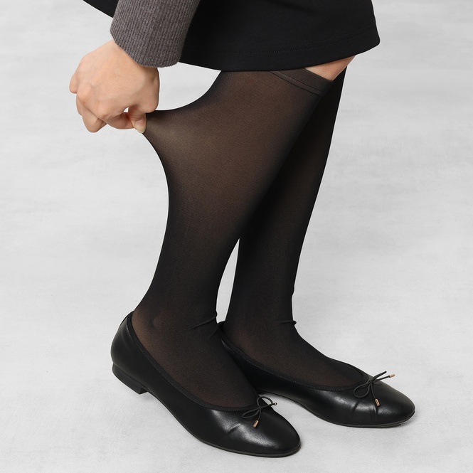 急激に気温が下がり、タイツや靴下が活躍する季節がやってきました。「しっかり防寒したいけど、足元に抜け感がほしい」「タイツや靴下を履くと野暮ったく見える」など、通常のタイツの重い印象に悩みを抱えている方も多いのではないでしょうか。 例えば、オフィスカジュアルに厚手の黒タイツを合わせると、コーディネートが暗くなりがちだったり、休日のお出かけでお気に入りのワンピースやスカートを選んでも、重たい印象になってしまうこともあります。さらに、旅行や特別なオケージョンでは、足元をきれいに見せたいのに、防寒を優先するとおしゃれを妥協せざるを得ないことも。 そんなお悩みを解決してくれるアイテムとして、KEYUCAから「d 薄見えフェイク靴下」と「d 薄見えフェイクタイツ」の登場です。外側にブラック、内側にベージュを編み込む特殊な編地を採用することで、厚みがあって暖かいのにもかかわらず、まるで素肌に薄手のタイツをはいているかのような繊細な透け感を実現しました。しっかりと防寒はしたいけれど、脚をほっそり見せたい方にもおすすめです。 厚みの種類は、普通の生地厚の60デニールと少し厚手の130デニールの2タイプをご用意。透け感はどちらもほぼ同じ作りとなっており、気温に応じて使い分けることができます。60デニールは軽やかな印象で、少し肌寒い日にもぴったり。130デニールは寒さが厳しい日にも安心して履ける、しっかりとした暖かさを提供します。重い印象になりがちな冬服に抜け感をプラスしてくれる「d 薄見えフェイク靴下」と「d 薄見えフェイクタイツ」で、しっかりと防寒をしつつ、冬のおしゃれを心ゆくまでお楽しみください。