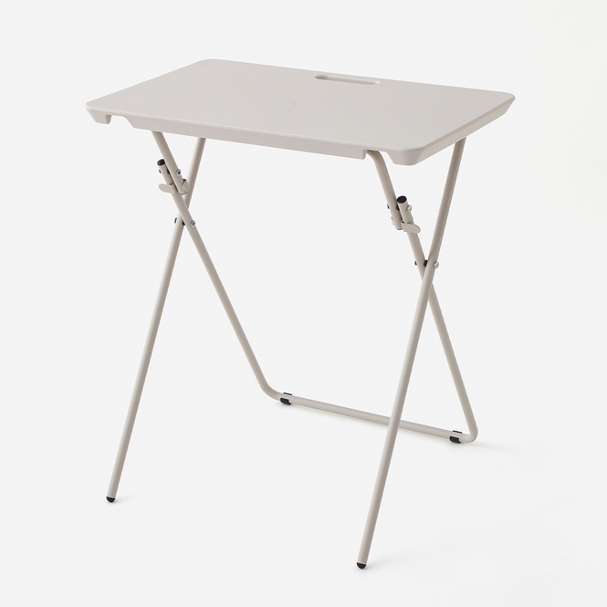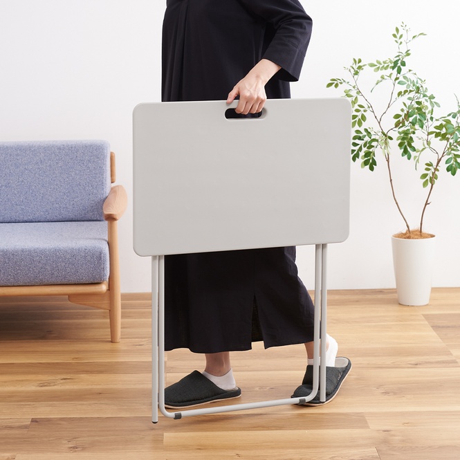 天板は樹脂製で、中が空洞の構造を採用しました。 一般的な木製の天板を使用した製品に比べても軽く、重量は約4.3kg。 またハンドルがあるので、女性でも持ち運びやすい設計になっています。
