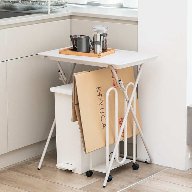 「家の中でどんなときに作業スペースが欲しくなるのか」を市場の声をもとに分析したところ、狭いキッチンでの調理や、ミシン作業、子どものお絵かきや工作、観葉植物のお手入れなど、汚れやキズが気になるためダイニングテーブルでは行いたくない作業が多く、別の作業スペースを求めるニーズが明らかになりました。 KEYUCAの折りたたみデスクは、そうしたシーンでの使いやすさを考え、軽くて移動しやすく、汚れてもさっと拭くだけで清潔を保てる仕様に。どんな場面でも気兼ねなく使えるよう設計しました。 家の中の“ここにもう少し作業スペースがほしい” を叶えてくれる、頼れるサブデスクです。