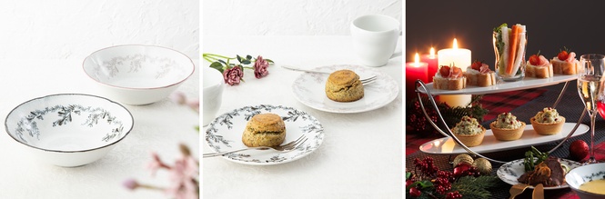 12月に入り、クリスマスも目前。今年は“平日クリスマス”ということもあり、当日はご自宅でクリスマスディナーを楽しむご予定の方も多いのではないでしょうか。ご友人やご家族との集まりが増えるクリスマスシーズンに合わせ、KEYUCAではおうちでのパーティーシーンを華やかに演出できる多彩なアイテムを取り揃えております。 12月6日(土)には、繊細な模様が料理を引き立てる「【美濃焼】annelボウル170」と「【美濃焼】annelプレート165」を発売。ボウルには色とりどりのサラダを、プレートにはスイーツを盛り付けるだけで、パーティー気分が高まる植物柄をアンティーク調にあしらったデザインが特徴のアイテムです。 さらに、落ち着いたカラーと金色・銀色のステッチの組み合わせが華やかなランチョンマット「ゴールドステッチランチョン」や、華やかな多面体デザイン「リノチェロ フリーグラス 230ml」と合わせれば、トータルコーディネートも簡単に完成。いつもの食器に少し変化を加えるだけで、お手軽ながらも華やかな食卓が完成します。KEYUCAのアイテムでクリスマスシーンの食卓に彩りを添えて、特別なひと時をお過ごしください。 このほか、クリスマスの食卓にオススメの多彩なアイテムを展開するなど、店頭はクリスマス一色に染まります。過去に販売し人気を集めた「パーティースタンド 2段」も使いやすく、買いやすい値段になって復刻発売。スイーツや前菜などをのせるだけで“ちょっと特別”なティータイムやおうちパーティーをアップデートしておしゃれに演出できます。 KEYUCAのアイテムでクリスマスシーンの食卓に彩りを添えて、特別なひと時をお過ごしください。