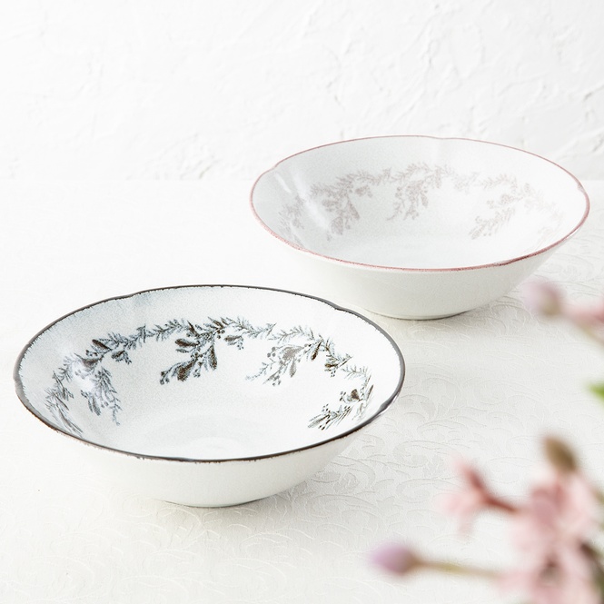 アンティーク調の植物柄が魅力のシリーズ。 釉薬で滲んだ絵柄と、波打つフチ形状がクラシカルな雰囲気を演出します。17cmサイズのボウルは、サラダやデザート、シリアルなど幅広く使える便利なアイテムです。 商品概要