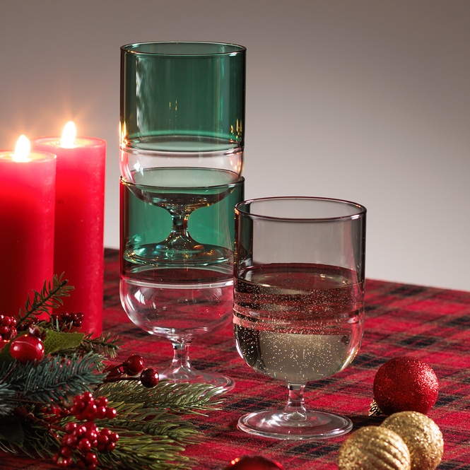 パーティーの食卓を彩る、ツートーンカラーのステムグラスです。耐熱グラスで作られているため、温かい飲み物にも使用できます。レンジでの温め直しも可能です。 商品概要