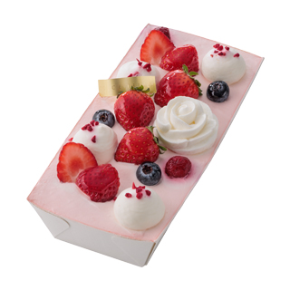税込¥1,880 ピンク色の苺クリームが華やかな期間限定ケーキ。甘さ控えめでコクのある、なめらかな苺ピューレ入りの生クリームと濃厚なカスタードは甘酸っぱい苺との相性抜群です。