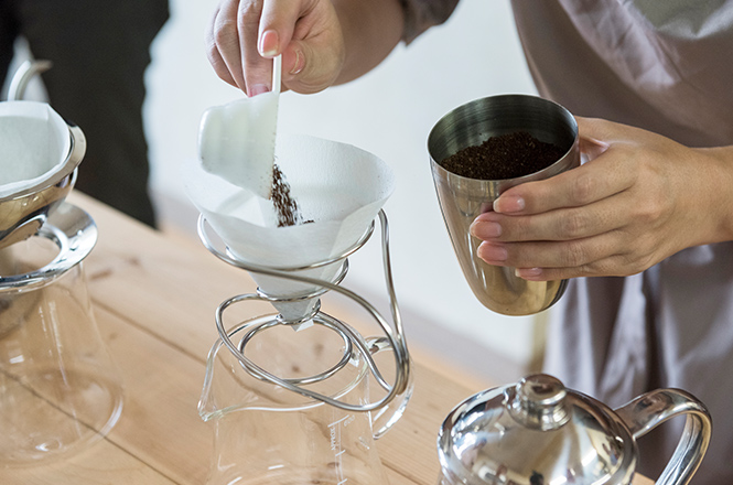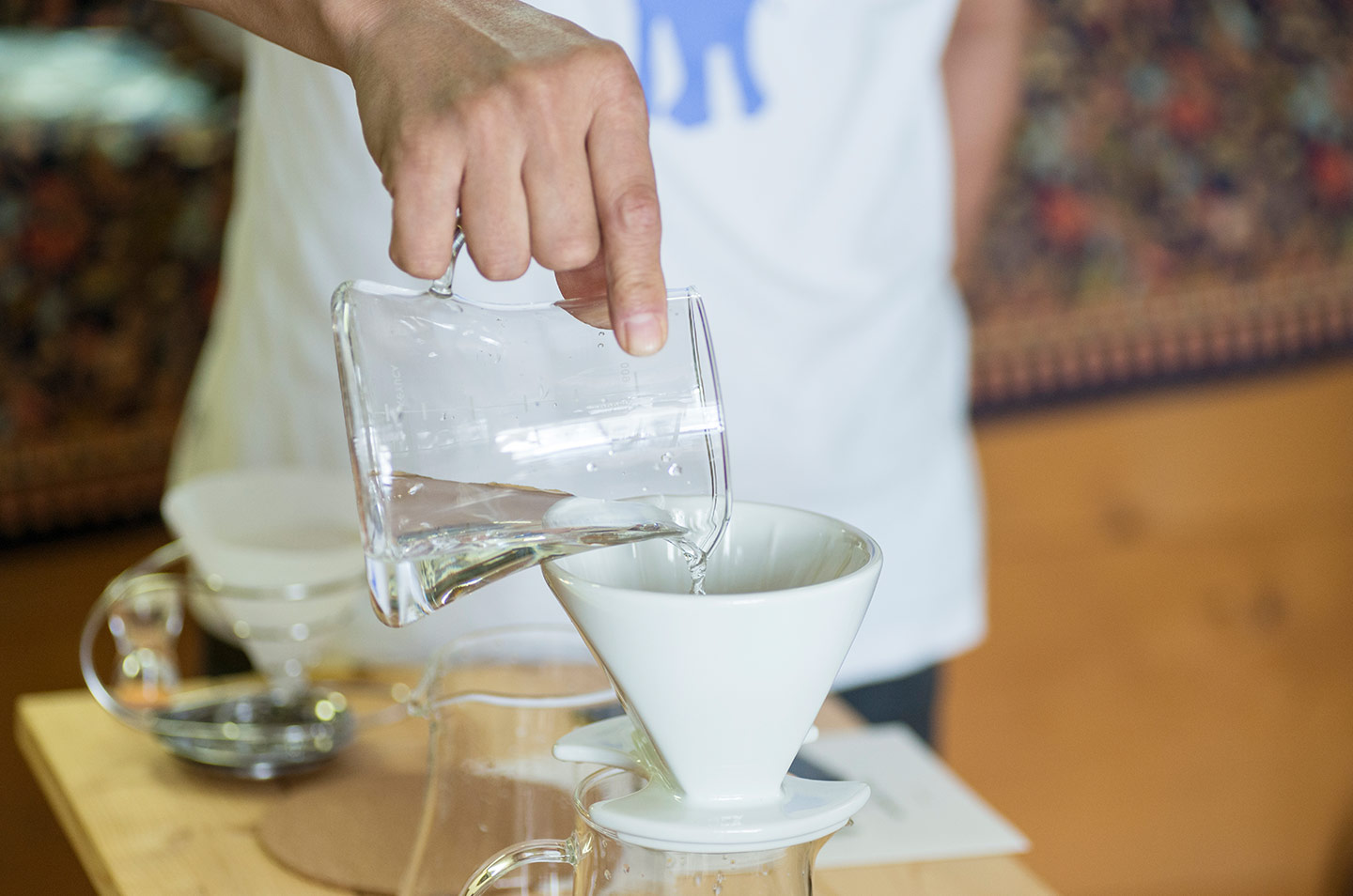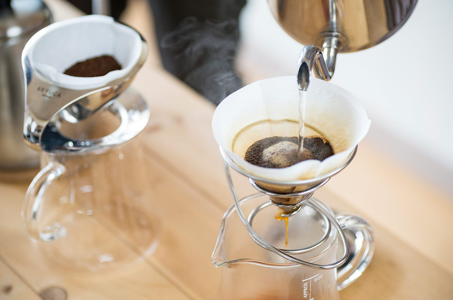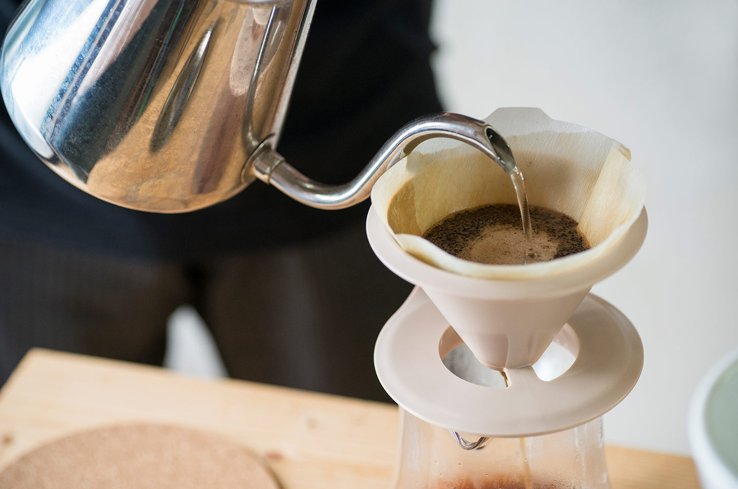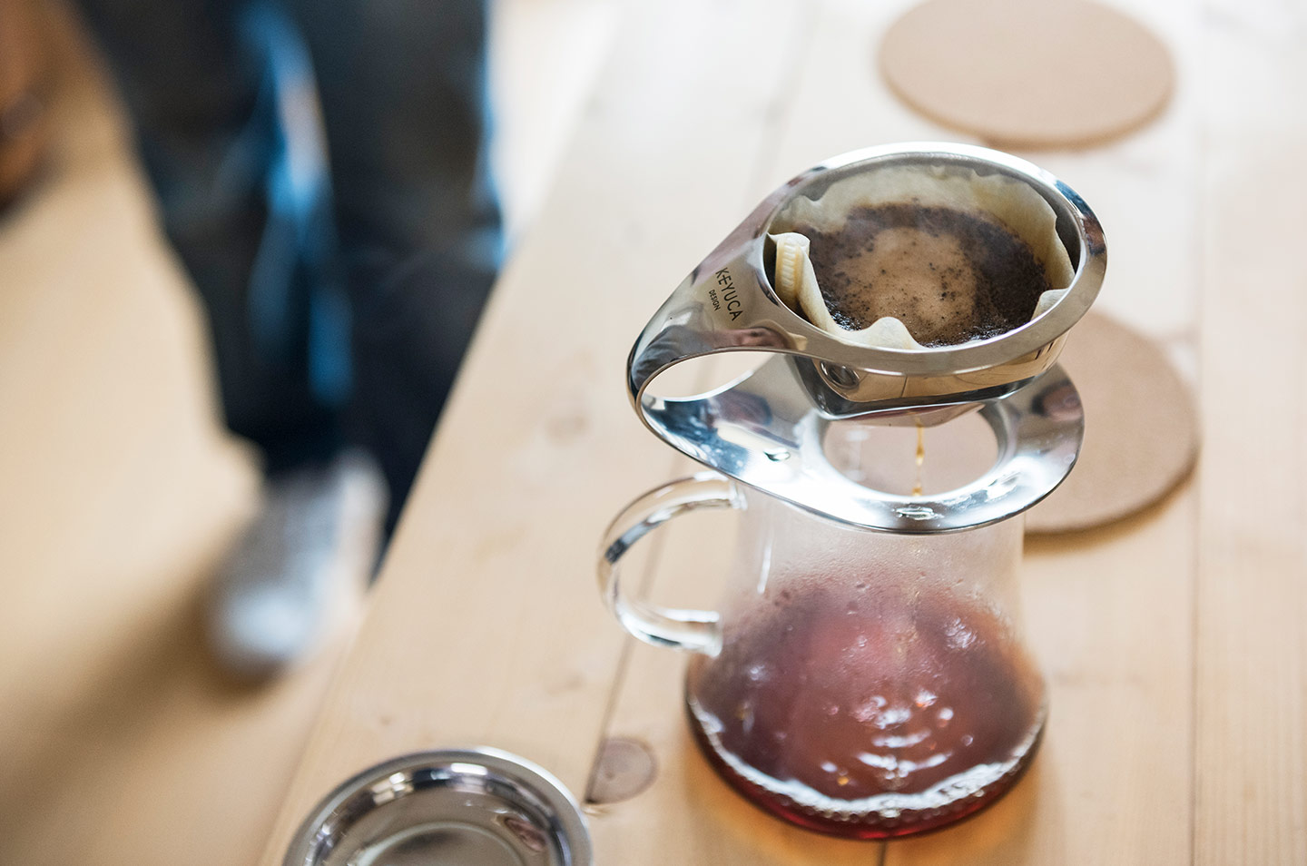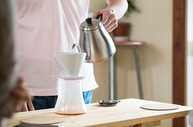 美味しいコーヒーの淹れ方 2017.11.1 以前こちらでもご紹介したコーヒーショップ「サンデーズー」でドリッパーの違いを楽しむコーヒー教室が開かれました。今回のstyleではその様子をレポートします。ドリッパーだけでなく、淹れ方のコツや豆の保存の仕方など、お家でコーヒーを楽しむための豆知識がぎっしり詰まったレクチャーでした。 講師はサンデーズーのオーナー奥野さん。参加者は4名。少人数制で和やかながら濃密な1時間半でした。 今回はケユカの4種類のドリッパーを使用して、同じ豆でどれくらい味の違いがあるかを体験。まずは、豆を入れずに一人分200CCの水がどれくらいのスピードで落ちるのかを計測してみました。 bulge コーヒードリッパー ¥1,800(+税) ワイヤー形状のspiraと、同じ円錐形のcurva、3つ穴のbulge、一つの穴のアネッロを比べてみます。 結果はspiraが最速の30秒に対して、blugeが2分30秒。アネッロは4分近く時間がかかることが分かりました。 この時間の違いが味にどう影響するのか。まずは、それぞれ別のドリッパーを選んで自由にドリップしてみました。 普段、自分の淹れているコーヒーの味とは違うことに気づいた参加者のみなさん。自然とドリッパーや淹れ方について質問が出ます。 ワイヤー方式のspiraはペーパーが側面に当たる面積が少ないため、ネルドリップに近い方式で落ちる速度も早いのに対して、一つ穴方式のアネッロはゆっくりと時間をかけて落ちていきます。「ゆっくりとお湯を注ぐのとは違うのですか?」という参加者の方の質問に対して、「豆がお湯に浸かっている時間が変わるため、お湯を注ぐ速度とは違うんです」と奥野さん。落ちる速度の遅いドリッパーは成分も多く抽出される代わりに、苦みや渋みも出てくるとのこと。ただし、それは良し悪しではなく、あくまでも好みの問題と奥野さんは言います。 2回目のドリップはひとりずつ、それぞれに淹れ方のアドバイスをしていきます。 コーヒーをおいしく淹れるコツはお湯の温度と蒸らしがポイント。お湯の温度には95度派と85度派があるそうですが、奥野さんは85度派。高い温度だと酸味が強調されるのに対して、低い温度だとまろやかな味わいになるそうです。 蒸らしは30秒。そして3,4回に分けてゆっくり細くお湯を注ぐのがポイントとのこと。 curva コーヒードリッパー ¥800(+税) 蒸らしの30秒の時間が思ったよりも長いことに驚く参加者のみなさん。ゆっくり注いでいるつもりでもついつい速くなってしまうものだと奥野さんは言います。参加者のみなさんは、あらためて時間を測ったり、指摘されて初めて自分の癖に気づいたようでした。 spira コーヒードリッパー ¥1,400(+税) それぞれがドリップしたコーヒーを参加者全員で飲んで、同じ豆、同じ淹れ方でも味が変わることを体験しました。こうして違いを比べてみることで、あらためて自分の好みの味に気づいてきたようです。 ドリップを待つ間に、豆の保存方法が話題に。冷蔵庫で保存している人も多いですが、挽く前の豆の状態の場合は冷暗所での保存が基本。一ヶ月程度の長期保存の時は冷凍庫で保存しても良いそうですが、通常は冷蔵庫で保存することはお勧めしないそうです。活性炭と同じように冷蔵庫の匂いを吸収してしまうそうです。また、挽いた状態の豆は1週間程度で使い切った方が良いそうです。 アネッロ 珈琲ドリッパー ¥3,000(+税) もうひとつ、ドリップのコツはお湯が途切れる前にお湯を足すこと。お湯が途切れてしまうとアクが下に落ちてしまうそうです。なので、最後も落ちきる前にサーバから外した方が良いそうです。また、ゆっくり注ぐのが難しいという参加者の方に対して、ゆっくり落とすには専用のポットは絶対に必要と奥野さん。 徐々に打ち解けて、参加者のみなさんの日頃のコーヒーに対する疑問に奥野さんが丁寧に答えていきます。 pausa ドリップポット ¥3,800(+税) この日はプロ用のドリップポットとケユカのドリップポットを順番に使い比べてみました。プロ用は直接火にかけられなかったり、お手入れが大変なのに比べて、家庭用にデザインされたケユカのドリップポットは使い勝手がよく、気軽にお家で使うには重宝します。女性の方でも扱いやすい重さでバランスもよく、奥野さんも「ドリップしていて疲れない」と太鼓判を押してくださいました。気分によってポットを使い分けるのも面白いかもしれません。 Dorfe コーヒーサーバー 600 ¥2,300(+税) 中には手動で豆を挽いているという参加者さんも。豆の硬さによって粗さが変わってしまうことを悩んでいるそうです。奥野さんのオススメは電動式。調整した通りに挽けるし、スピーディーで一度に何杯分も挽くことができます。一度電動を使ってしまうと手放せないとか。 お湯の温度を調整したり、ゆっくり注いだりと、心を鎮めて時間をかければ美味しいコーヒーになると奥野さん。でも、あまり難しく考えすぎずに楽しむことが一番ですとおっしゃっていまし