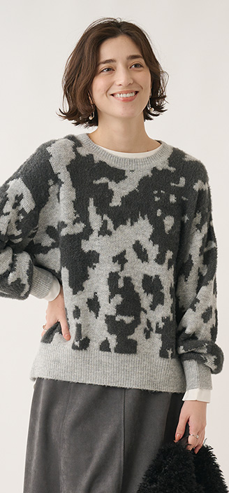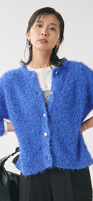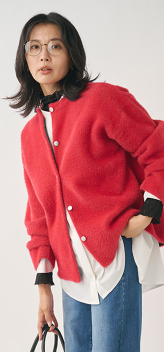 MIX生地とジャギーで冬ムード漂うスタイルが即完成!着るだけで華やぐニットカーディガン。