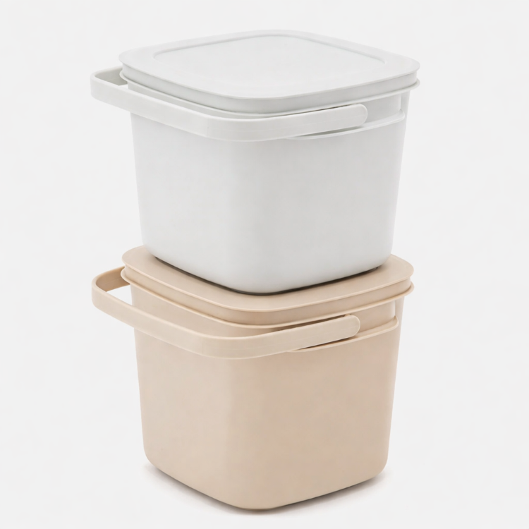 四つ角があるので、水を流す際に流しやすいです。バケツの内側には、1~6Lまで1L毎の目盛りが付いているので、洗濯や掃除の際に洗剤を希釈する目安となります。